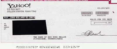 I'm just gonna guess that this check in the amount of ZERO dollars and ZERO cents cost YAHOO! about 50 cents to process and mail to me.